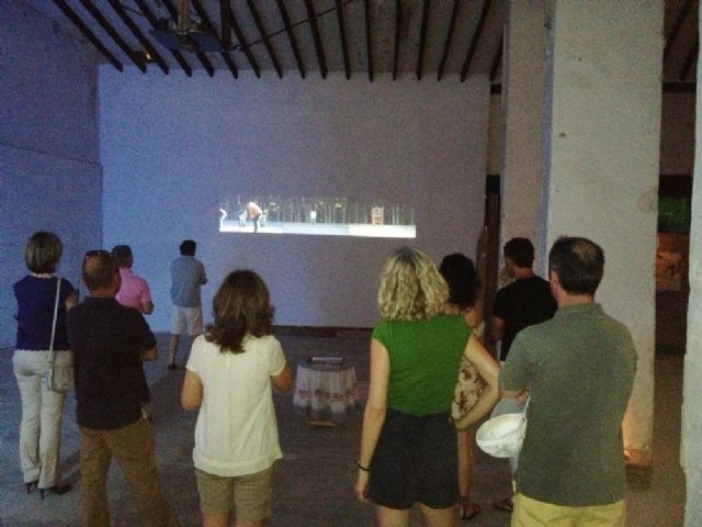 El alcalde de Blanca, Rafael Laorden, y la edil Esther Hortelano inauguraron ayer junto a Angiuli la exposición 'El dinero lo es todo' que recoge el proyecto de investigación del artista italiano sobre los trabajos en el campo relacionados con la vid.