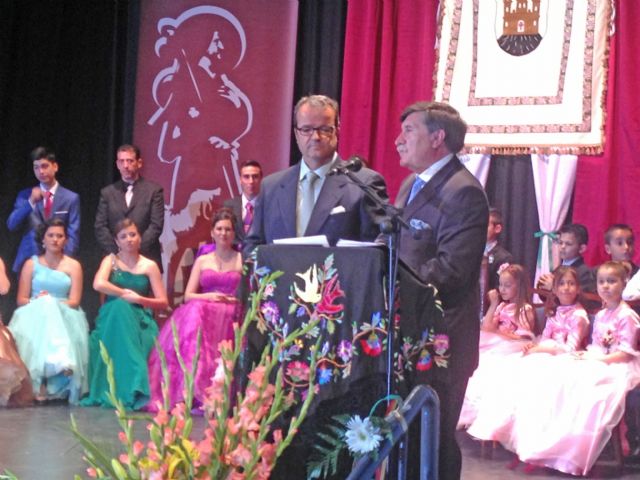 Con las risas encajadas aún en la cara de los presentes, debido a las historias que El Corcho recitó con sus rimas en panocho, Estefanía Molina coronó a la nueva Reina de las Fiestas, Coral Cano que recibió la banda de manos del alcalde del municipio, Rafael Laorden, al igual que a la corte de Damas de Honor le impusieran sus acompañantes.