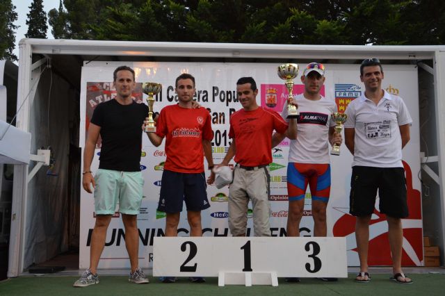 Raúl Guevara, del Mandarache, fue el primero en cruzar la línea de meta parando el crono en 33'03'' seguido muy de cerca por David Sánchez, del Club Fondistas de Alcantarilla (33'54'). El pódium absoluto masculino lo completó Carlos Hernández, del Alma Trail, con un tiempo de 36'22''.
