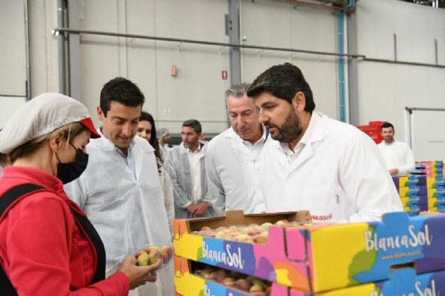 En el inicio de la campaña de recogida fruta de hueso, López Miras remarca que "en 2022 exportamos 230 millones de euros y 145.000 toneladas y la estimación de la actual campaña de fruta de hueso refleja un incremento del 28% del volumen producido en la Región, por lo que esperamos llegar a casi 370.000 toneladas".