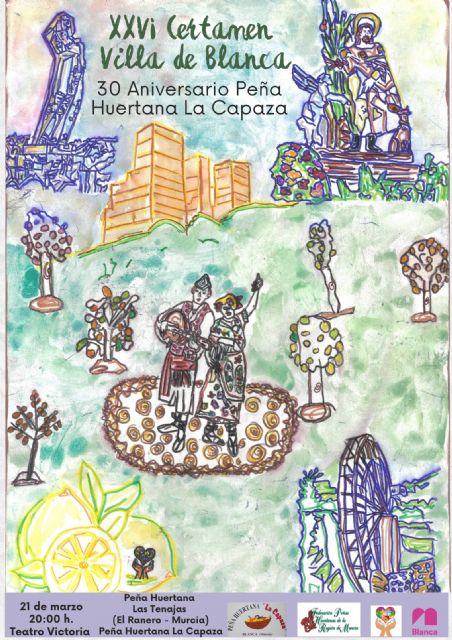 La Peña Huertana La Capaza, en colaboración con el Ayuntamiento de Blanca, celebra su 30 aniversario con la programación de diversas actividades culturales y con un cartel que han elaborado los usuarios de la Asociación Blanca Integra.